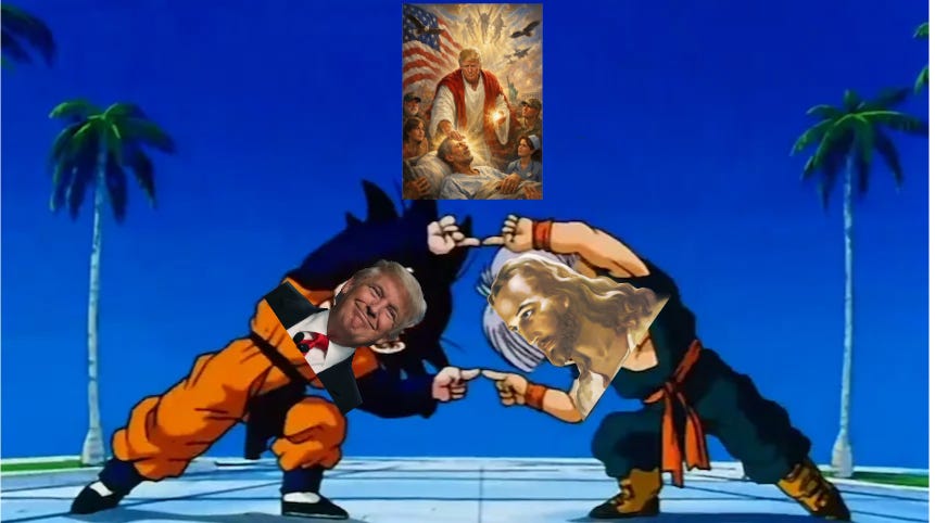 And on Egotistical Sunday, the president unveiled his senility-ridden AI image of him as Jesus...