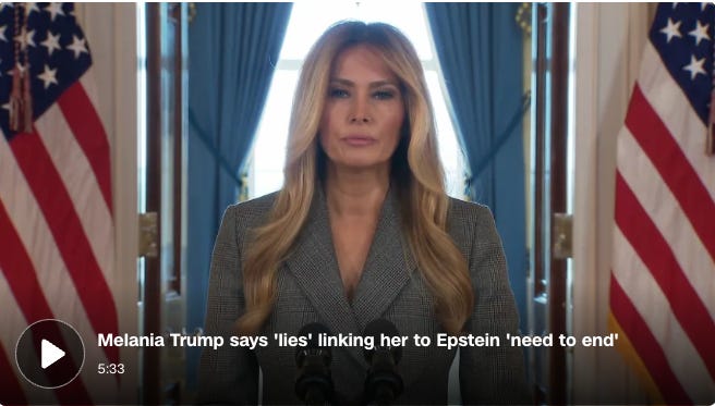On Melania Thursday, Trump’s wife took the spotlight from her husband, issuing a statement attempting to distance herself from Epstein, in what some consider a pre-emptive move in advance of an upcoming news story.