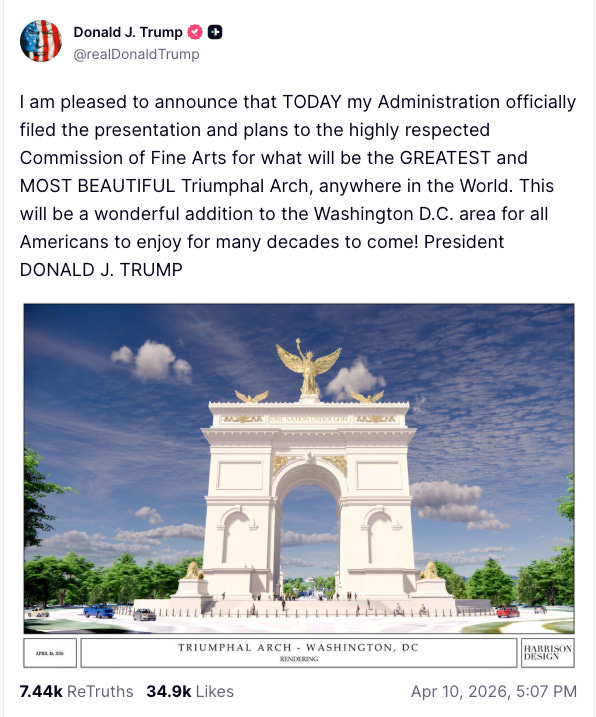 On Gawdy Friday, Trump unveiled the plans for an unnecessary and tacky Triumphal Arch to be built in D.C.